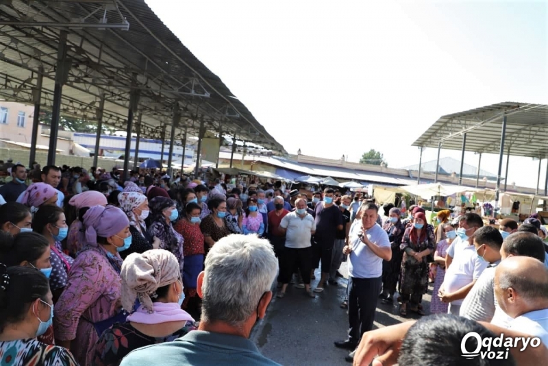 Бугун Оқдарё туман ҳокими Н.Сулаймонов томонидан туман маркази Лойиш шаҳарчасидаги деҳқон бозори ҳамда буюм бозорида аҳоли ва сотувчилар ўртасида “COVID-19”га қарши вакцина олиш бўйича тарғибиот ишлари олиб борилди. Туман раҳбари тарғибот давомида аҳолини касалликдан ҳимоялаш учун давлатимиз томонидан яратиб берилаётган ушбу имкониятдан унумли фойдаланиш зарурлигини ва эмланиш учун туманимизда барча шароитлар йўлга қўйилганлигини таъкидлади.