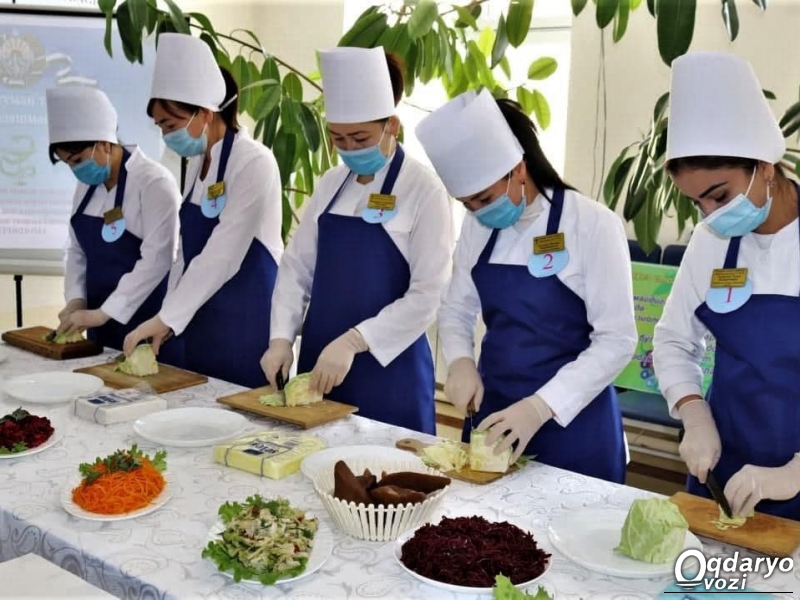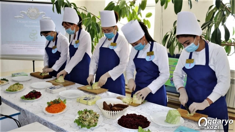 Мазкур тадбирда маҳалла, мактаб, ҚОП ҳамда ҚВП бўлимлардаги тиббиёт ходимлари ҳамда туман ҳокими ўринбосари С.Луқмонов иштирок этишди. Тадбирда қўшма қарор ҳамда йўриқномада кўрсатиб ўтилган “Маҳаллада бола тарбияси билан банд бўлган ва уюшмаган ўсмир қизларни 10 хил турдаги салат тайёрлашга ўргатиш тўғрисида”ги банди ижросини таъминлаш мақсадида ҳамширалар ва маҳалладаги 18 ёшдан 30 ёшгача бўлган ўсмир қизлар ўртасида “100 хил салат” деб номланган ўзаро беллашув ўтказилди.