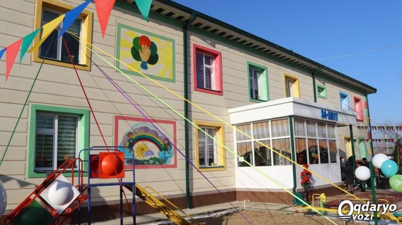 Лойиҳа қиймати 2,600 миллион сўмни ташкил этган мазкур давлат мактабгача таълим ташкилотида болажонлар учун барча қулайликлар, шарт-шароитлар яратилган бўлиб, замонавий жиҳозлар билан таъминлаган.
