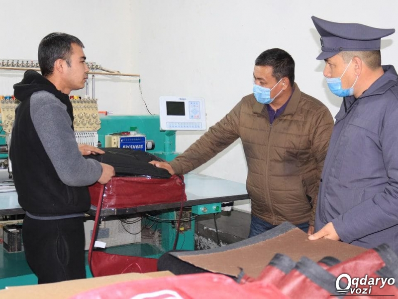 Туман ҳокими Н.Сулаймонов корхонанинг иш фаолияти билан яқиндан танишди. Туман раҳбари тадбиркорнинг муаммоларини ўрганар экан, тадбиркорлик фаолиятини янада кенгайтириш учун кредит масалаларида кўмак бериш билан бир қаторда, ҳокимлик томонидан ёрдам тариқасида 10 та тикув машинаси бепул берилишини ва бунинг учун тадбиркор ҳам яна 10 та иш ўрни яратиб, маҳалладаги 10 нафар ишсиз ёшлар, хотин-қизларни иш билан таъминлаш шартини қўйди.