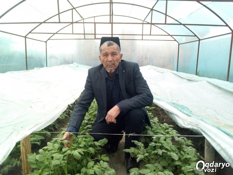 - 40 йилдан буён картошка етиштириш билан шуғулланиб келаман, - дейди Облоқул Низомов. - Одамлар март ойларида картошка уруғ қадаган пайтида биз бозорларга картошка чиқариб, яхши даромад кўриб келамиз. Айни пайтда 1 сотихли иссиқхонада сариқ навли «санта» уруғи ҳосилга кирган. Қизил картошка экинимиз ҳосилга кириш арафасида турибди. Бир сотихдан 6 центнер яъни 600 килограмм ҳосилни чамалаб турибман. Агар ҳар бир хонадон томорқасидан самарали фойдаланса, камбағал оиланинг ўзи қолмайди.